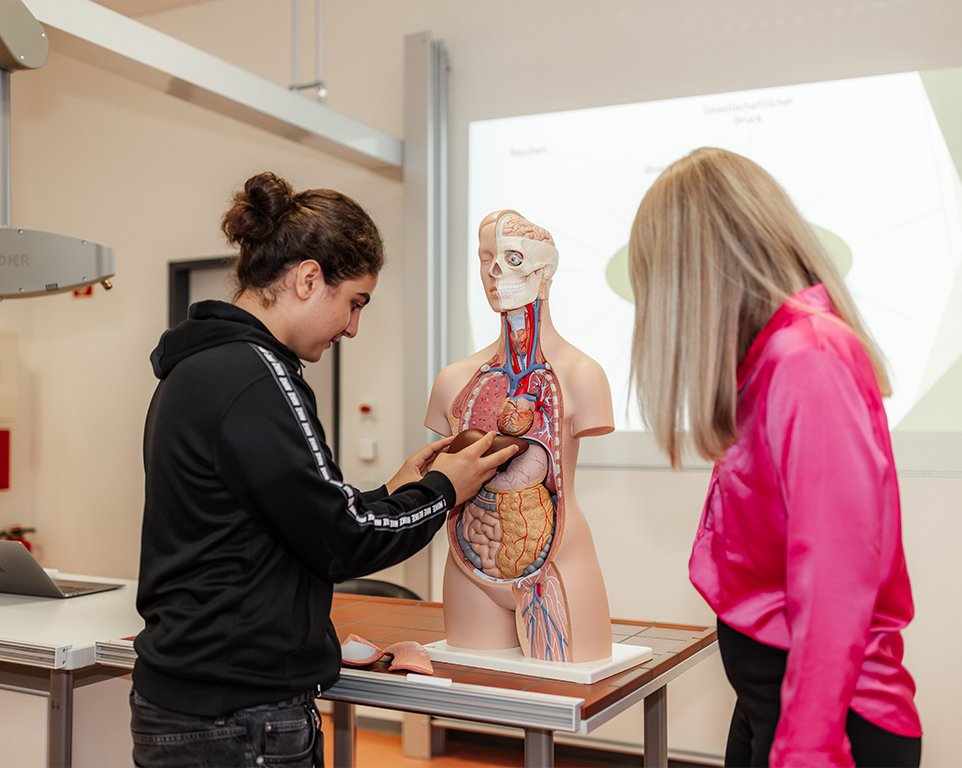 Ein besonderes Highlight ist unser handlungsorientierter Unterricht. Hier haben die Schüler und Schülerinnen die Möglichkeit, sich an realitätsnahen Projekten zu beteiligen – sei es das Sezieren von Organen, um die Anatomie besser zu verstehen, oder das Untersuchen von Pflanzen und Tieren aus unserer Umgebung. Diese Ansätze fördern nicht nur das naturwissenschaftliche Verständnis, sondern auch Geschicklichkeit, Neugier und Teamarbeit.