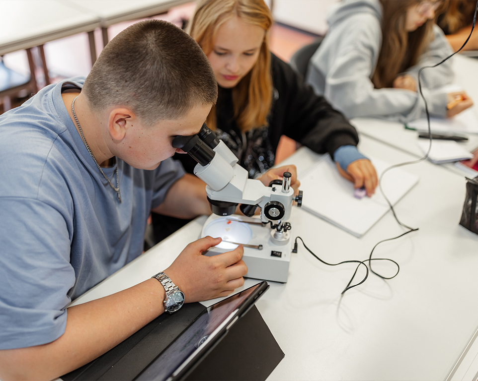 Biologie ist mehr als nur Theorie – bei uns steht das Entdecken im Mittelpunkt. Ob Experimente zu Zellbiologie, Ökologie oder Genetik: Die Schüler und Schülerinnen führen zahlreiche Versuche selbst durch, um die Inhalte aktiv zu begreifen. Dabei steht immer der Bezug zum Alltag und zur Umwelt im Vordergrund.