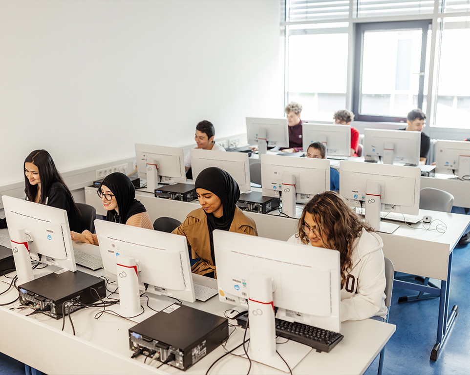 Der Unterricht ist praxisorientiert und fördert durch Projekte und digitale Tools Kreativität und Problemlösungsfähigkeit. Zudem gibt es Möglichkeiten, an Wettbewerben wie dem Informatik-Biber teilzunehmen, um Wissen und Fähigkeiten unter Beweis zu stellen.